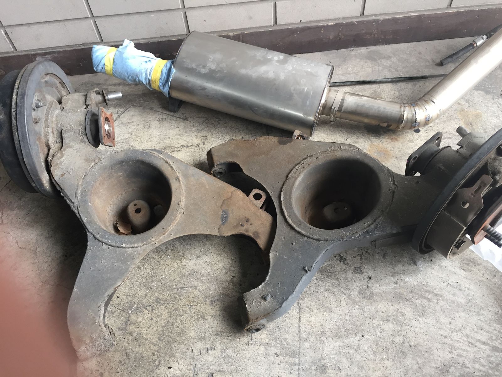 510ではないですが、AE86もスピンドル一体です。スピンドルを切り離しストラットとナックルになる様に加工した物です。上の写真がスピンドル部分を改造しナックル化した物です。