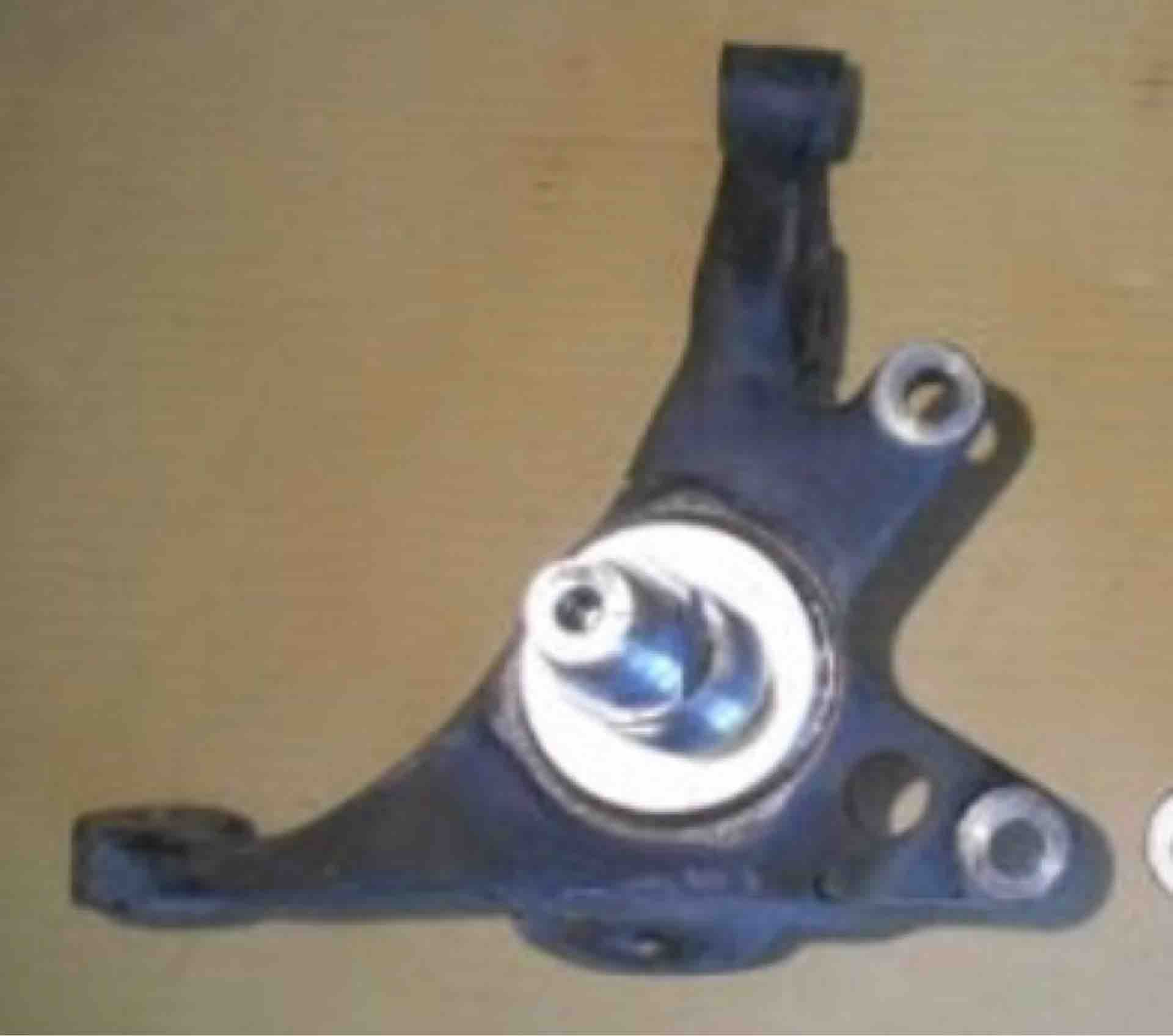これがシルビア系のナックルです。スピンドルとナックルが一体のタイプです。これを510に移植する方法もありますが、かなりの線でパフォーマンスを狙わないのならスピンドル一体式のストラットでオフセット量が多い(タイヤがボディに近くなる)タイプで深いリムを入れた方がコストは低いと考えます。しかしオフセット量の多いスピンドルの入手は困難です。