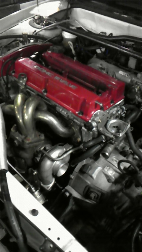 先日、調整も終わった4G63を搭載しました。ミッション6速も搭載し補機類を組みつければエンジン始動です。