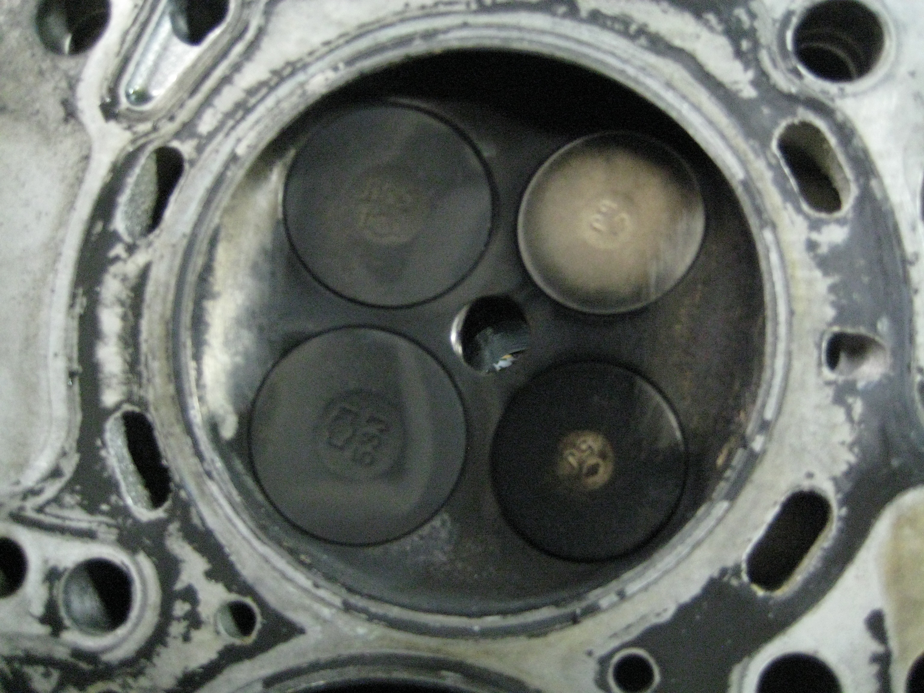 先日から作業しているSR20DETが終了しました。ヘッドの分解をしてみると上の画像で分かる様にスキッシュエリアがありません。スキッシュは画像で見ると少し白くなっている部分と反対側ですが削り落されています。カーボンが堆積しカーボンを取り除いた為に白くなていますが、ブツブツとデトネーションの跡も見られます。デトネーションはとても良くないのでスキッシュが有るヘッドに交換しました。良くスキッシュがない方が良いと云われる事もありますが、スキッシュがあった方が力の出るエンジンになります。エンジン本体はほぼノーマルでカムがもともとIN256EX256をEXのみ260に変更です。