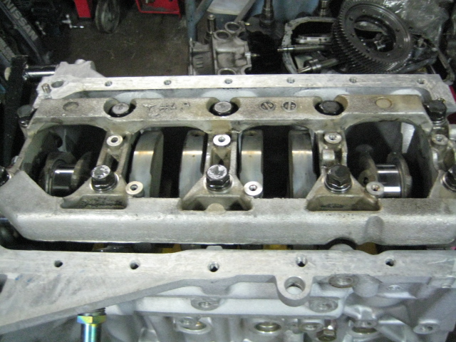 ラダー付きなのでオイルをたっぷり塗りゆくっりと丁寧にボルトを締めていきます。ボルトの締めは解説書に従います。ボルトは一度必ず緩めなければメタルの座りが悪くなるので一度緩めます。
