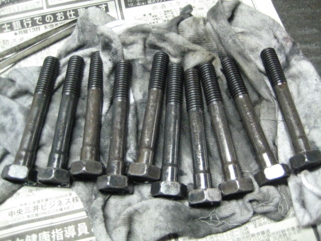 クランクキャップボルトを新品に替え、オイルを塗って準備します。