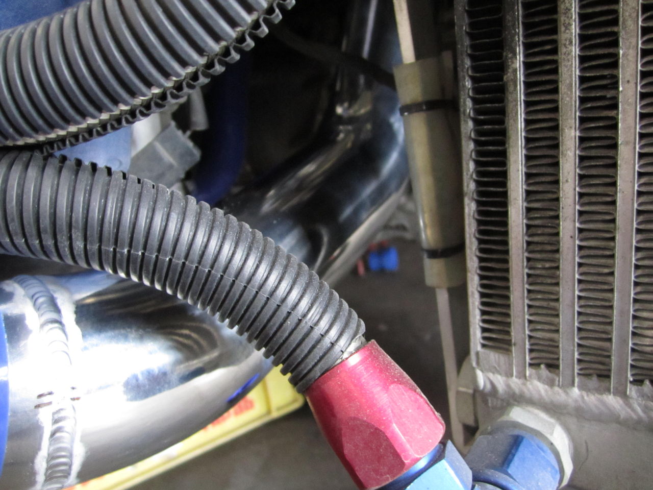 30°ベントから60°ベントに接続します。分かりずらいですが、フレーム逃げて、60°で立ちあがります。オイルクーラーがややスペースを食っているのでこのレイアウトに決定です。