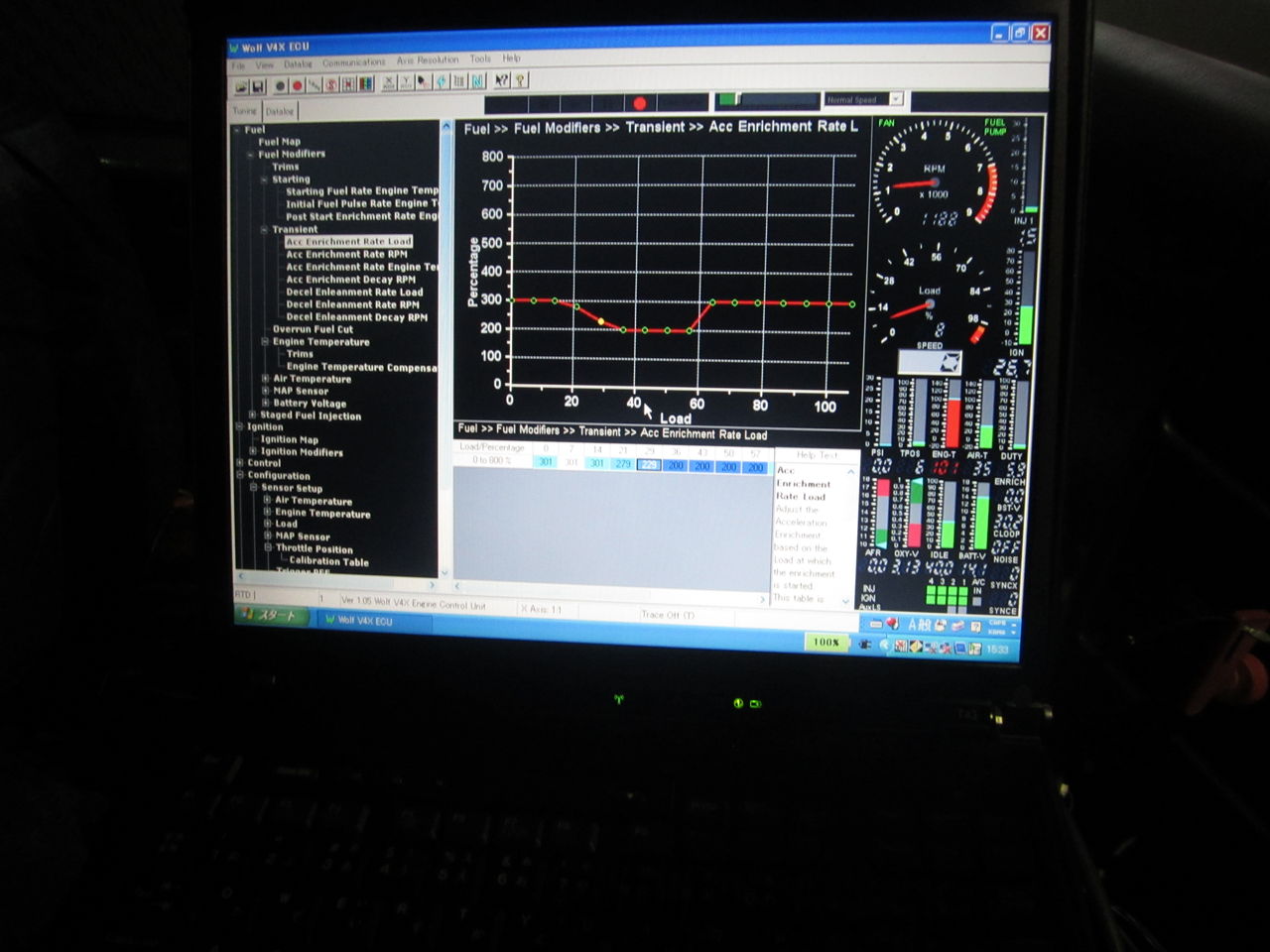 LOAD変化での加速増量、調整画面です。フルカラーで見やすく?ですが、変化も微量でエンジンに違いがでるほど、敏感なECUです、旧車のインジェクション化やハイパワーマシン、ECU壊れてECU廃番などの車両にうってつけのECUだと思います。80年代のインジェクションなどはびっくりするくらいの変化はあります