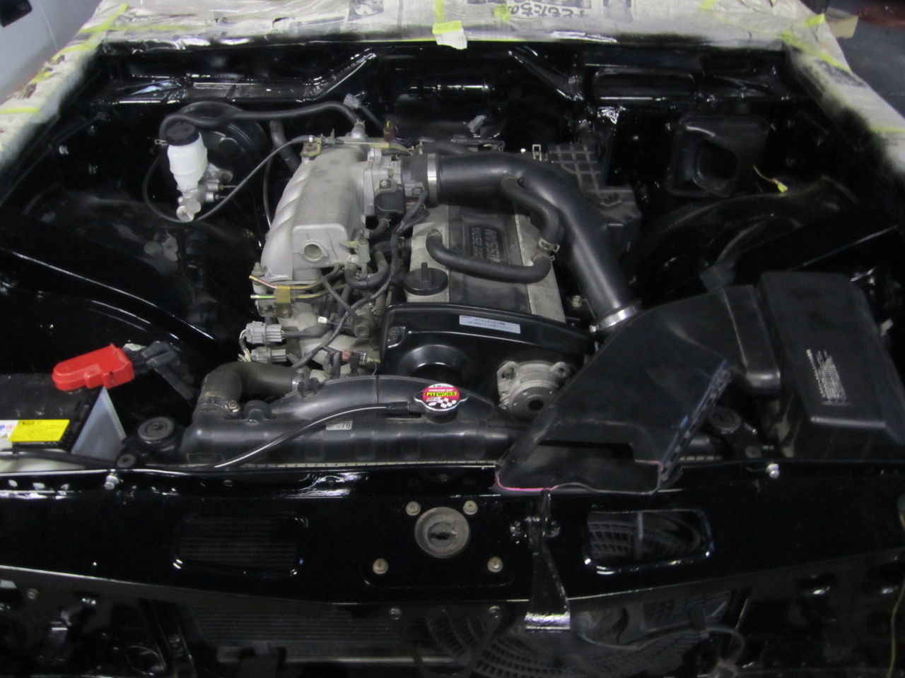 RBのラジエターやバッテリーもほぼノーマルと同じ位置関係で搭載しました、カップリングファンとラジエターの距離もノーマルです。ここも拘りです。位置関係がずれるとオーバーヒートの原因になり、ひと手間、ふた手間かかってしまいますがRBの純正に揃えていきます。
