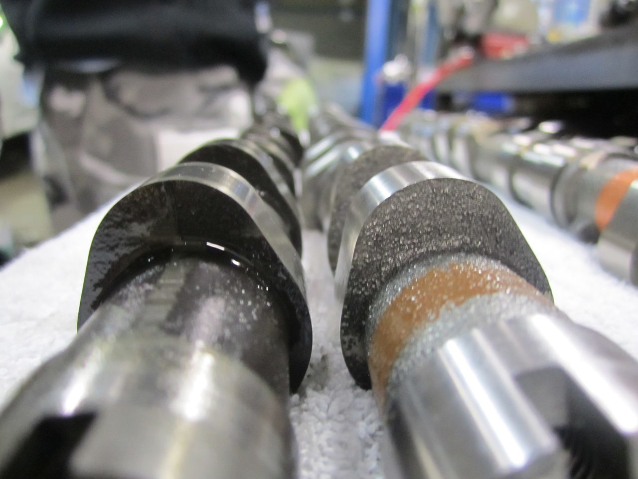 カム山、左右対称ですが、ロッカーアーム非対称です。右コスワース、左HKS