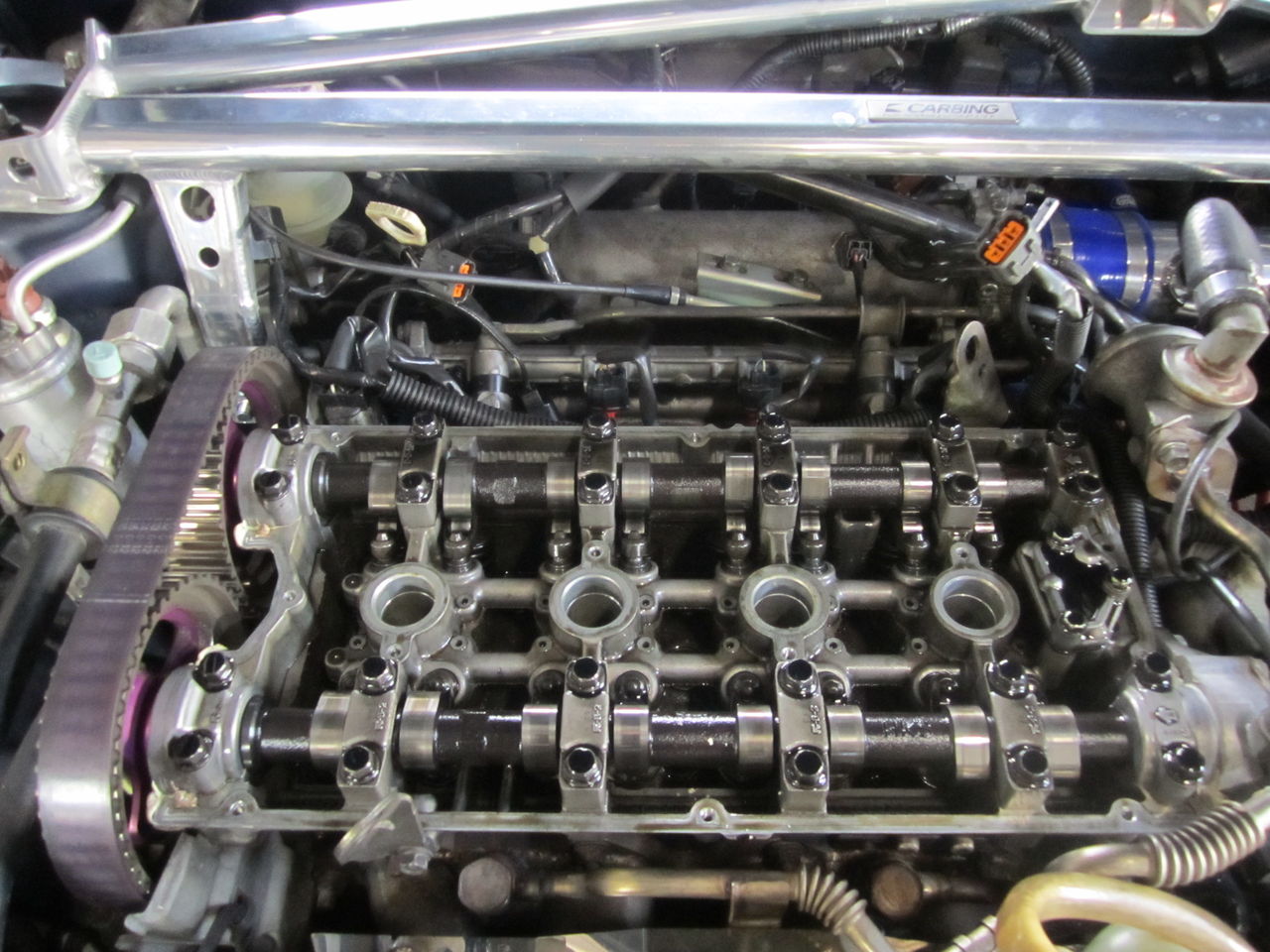 カムを組み込み完了。バルタイはコスワースの指定にセットしました。変に小細工するよりも指定の方がコスワースレベルだと良い結果があると思います。