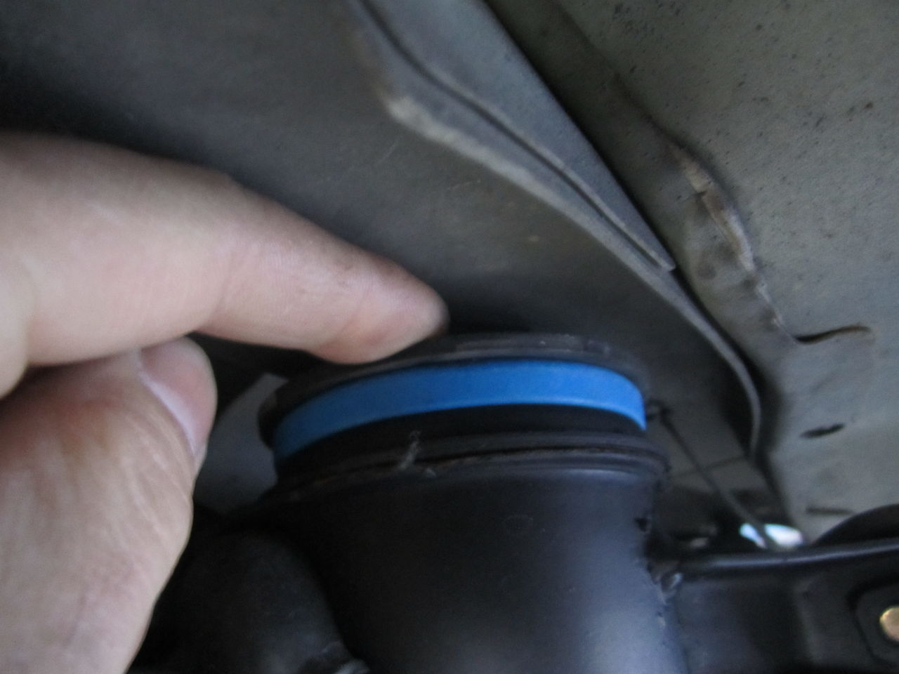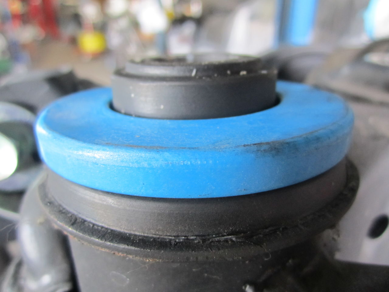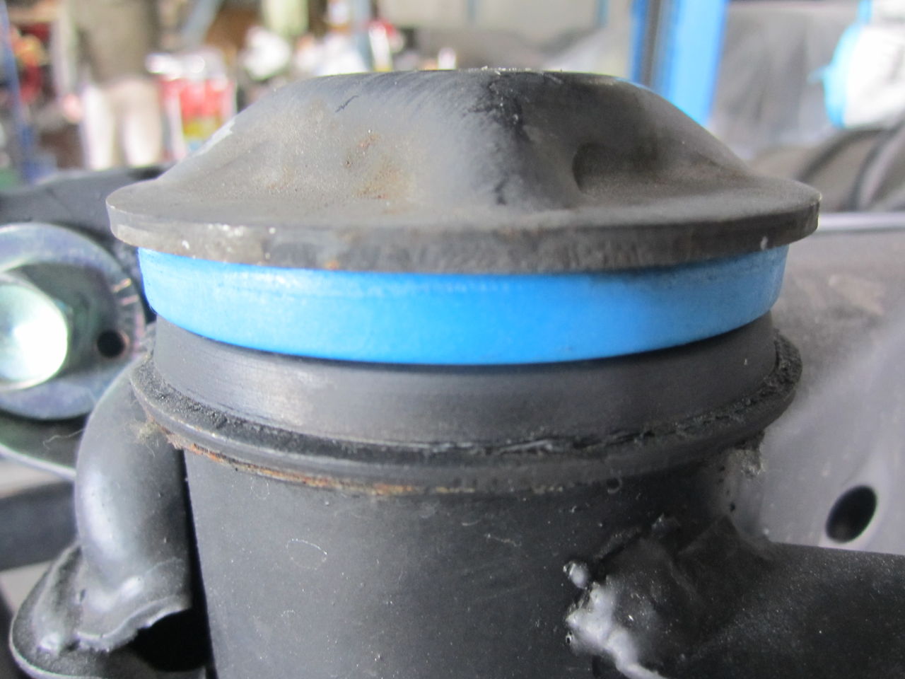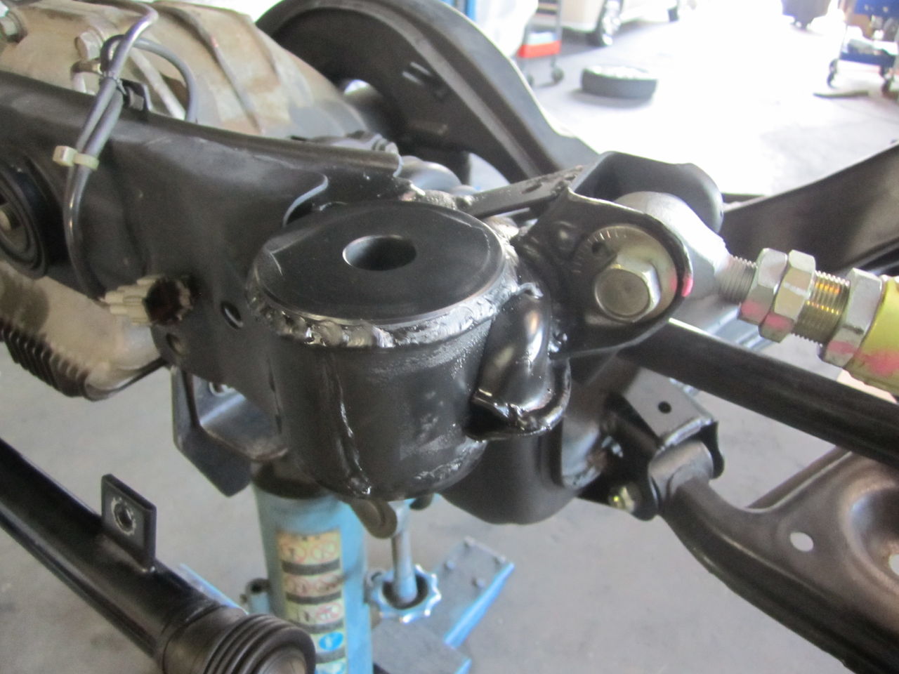 サスメンバーを降ろした状態のメンバーブッシュ部分です、リジットカラーが現時点では使われていますが、リジットカラーはブッシュが多分、動かないかもね位の物と考えます、ここが動けばメンバー自体がストロークしたり、サス剛性が向上するとも思えないので好みません、作業的に簡単なので雰囲気が欲しい場合はありですが