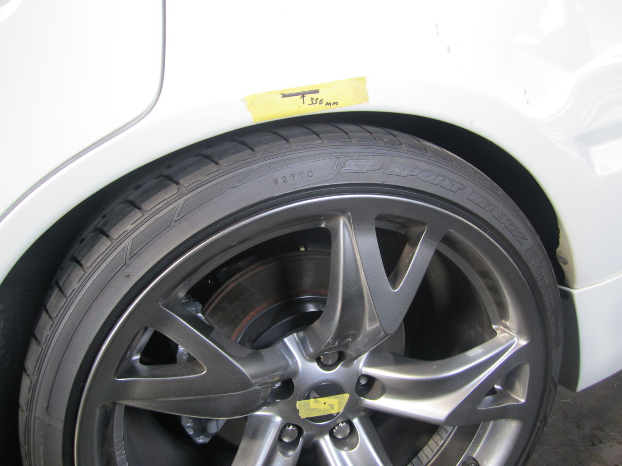 前回からの続きです、ここから粘着質の始まりのようです。まず、ビジュアル的にこれと言う車高が決まっているので1Gで基準を決めてハブセンターまでの距離を確認しました。