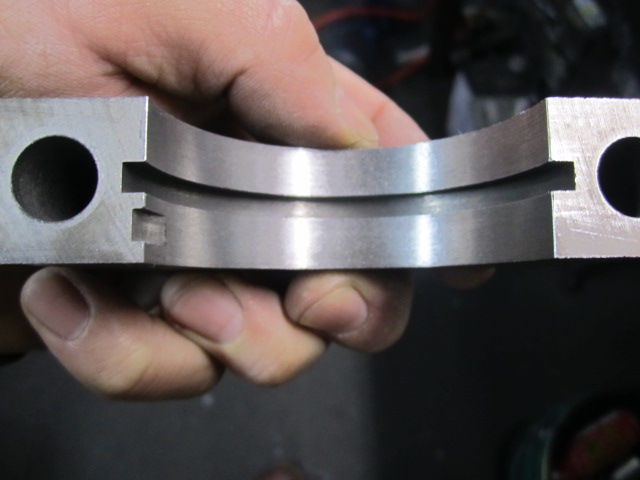 念のために光明丹を使いメタル背面のアタリを確認します。目や計測機では分からない歪みなどが光明丹を使えば分かったりするので。これはメタルだけ入れたアタリ方です。クラッシュが押されていないから全体に当たっていませが、気になる線アタリ部分に強いアタリが見えないので背面は問題がないと判断していきます。主立った原因が分からず2回目の組み付けを神頼み的に組んでみたら、ダメです気にいらない状態でした。やっぱりエンジンは機械です、ごまかしや神頼みは通用しません、そうなるには訳がどこか必ずあるはずです。再度点検します。メタルやボアー側に問題がないと自分の中で決断し、シャフト;側に問題があるのではと考えて点検すると。気に入らない部分がウェイトが上がって来た時に違和感がありアタリが強いのがキャップ側で端の部分を念入りに虫眼鏡を使うくらいに点検すると、なんて表現したら良いか分からない程細い線キズを発見しました、キズは鋭利な感じなのでキズの左右が盛り上がりクリアランスを締めていた様です。あまりやりたく無いですが1500番のペーパーでで盛り上がりを消しました。キズといってもも本当に分かりづらいキズです虫眼鏡で見つけたくらいのです。