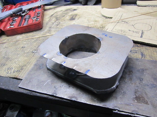 鉄板に穴を開けました、これは下段側のプレート、下手なりに折り返しを付けました、折り返しで多少強くしたい狙いがあったので。