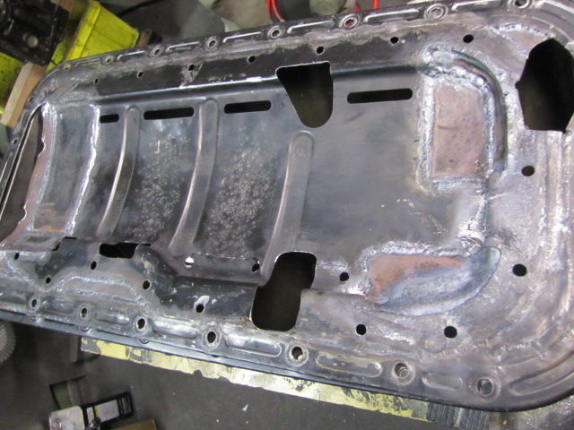 出来る限り不要な穴を鉄板で埋めていきます。クランク側にオイルパンのオイルが上がらない様にするのが狙いです、出来れば全部埋めたいのですが、オイルのリターンも考えると開けておく事が必要なので多少、残します。この状態でストレーナーを付けるだけになり、ほぼオイルパンの空間と遮断ができなんとなくドライサンプ風味です。しかしTIGで歪みを修正しながらチクチク薄物溶接は時間ばかりが過ぎていきます。