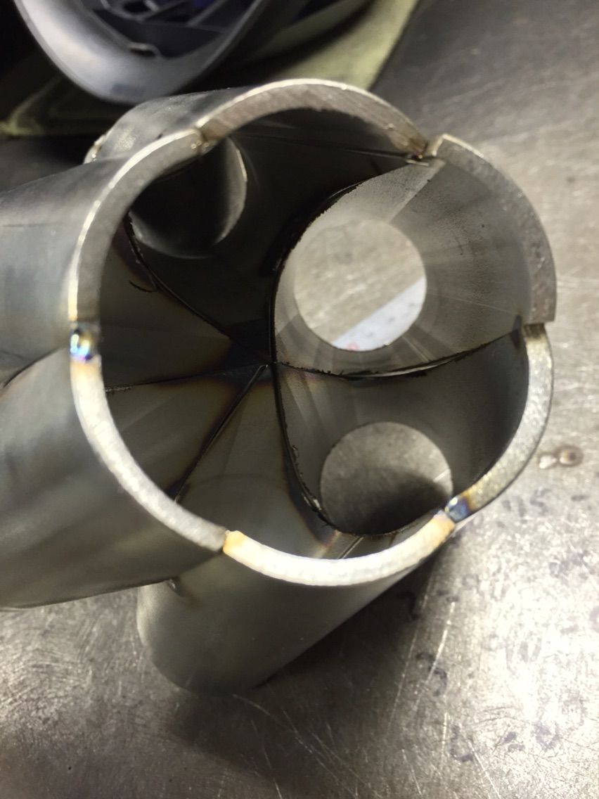 6-1の集合部は高さと角度の関係で10°で合流させ排気の干渉を出来る限りなくす様に作っています。