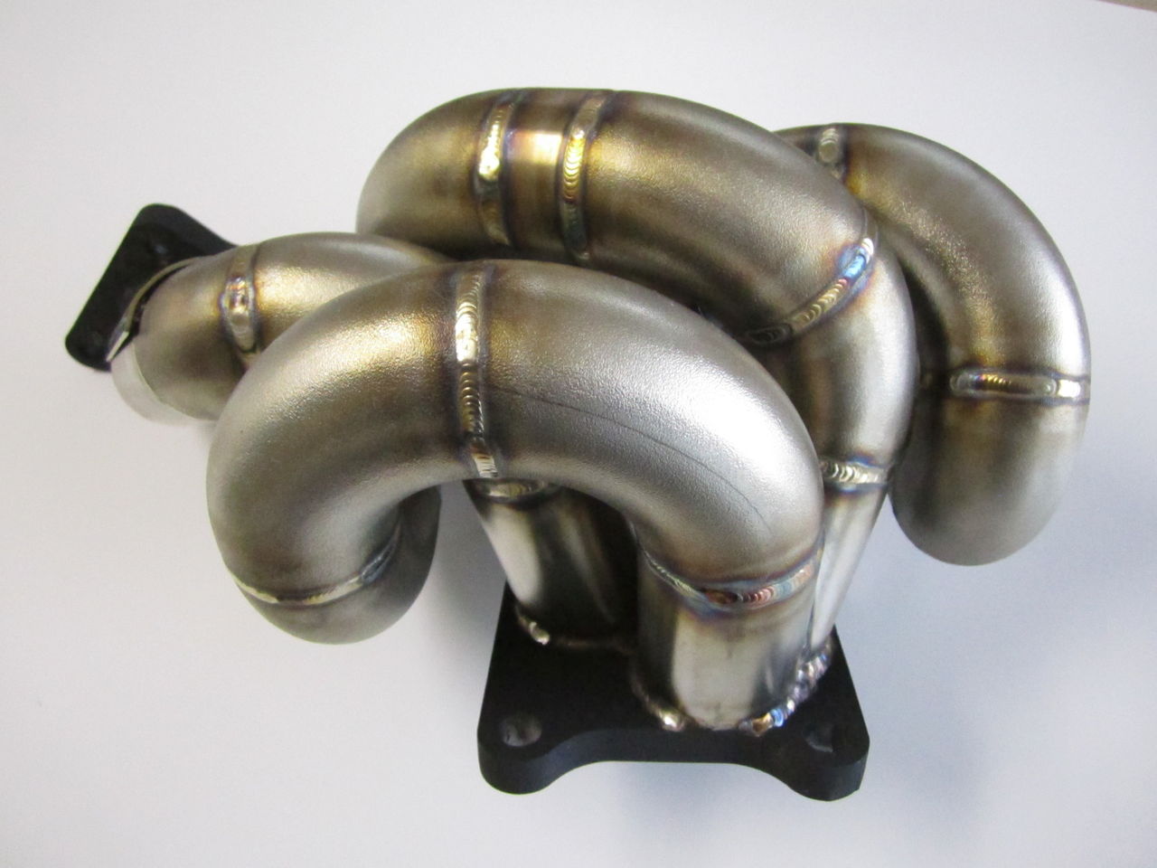 上の写真は完全にノーマルをモチーフにしているタイプです。どうしても2番3番が短くなり排気のリバース率も上がってしまいます。また平たい作りになっているのでターボインの部分で急激に曲がらなくてはならず低い速度なら良いですが速く高温な状態では曲げ部分での非効率がみられます。パイプの容積を太くなりして増やしても最後の合流が悪ければ非効率になります。簡単なイメージで高速道路などの合流車線と同じ様な物と考えても良いと思います。